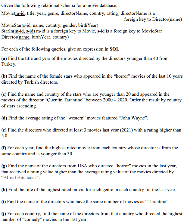 Solved Given The Following Relational Schema For A Movie Chegg Com