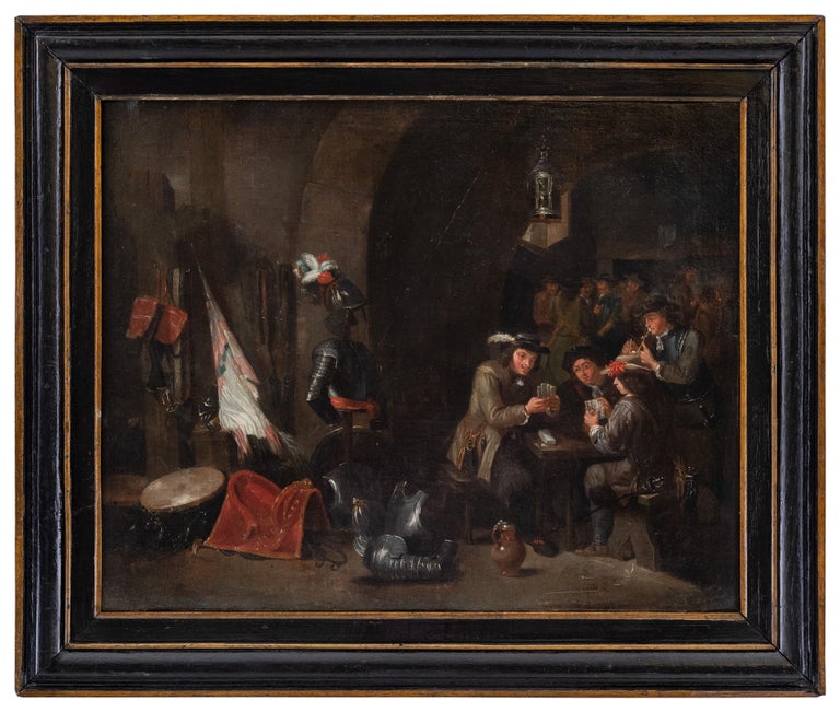 Unknown 18th Century Dutch Interior Painting Card Players Soldiers Oil On Canvas At 1stdibs